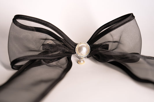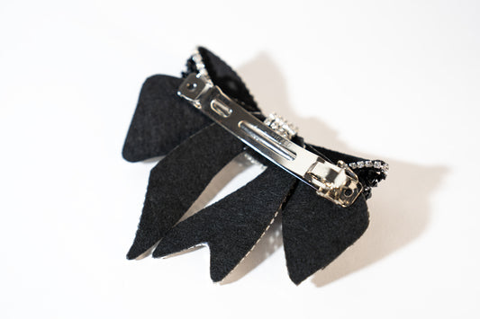 Big Velvet Bow Barrette With Pearls and Rhinstones